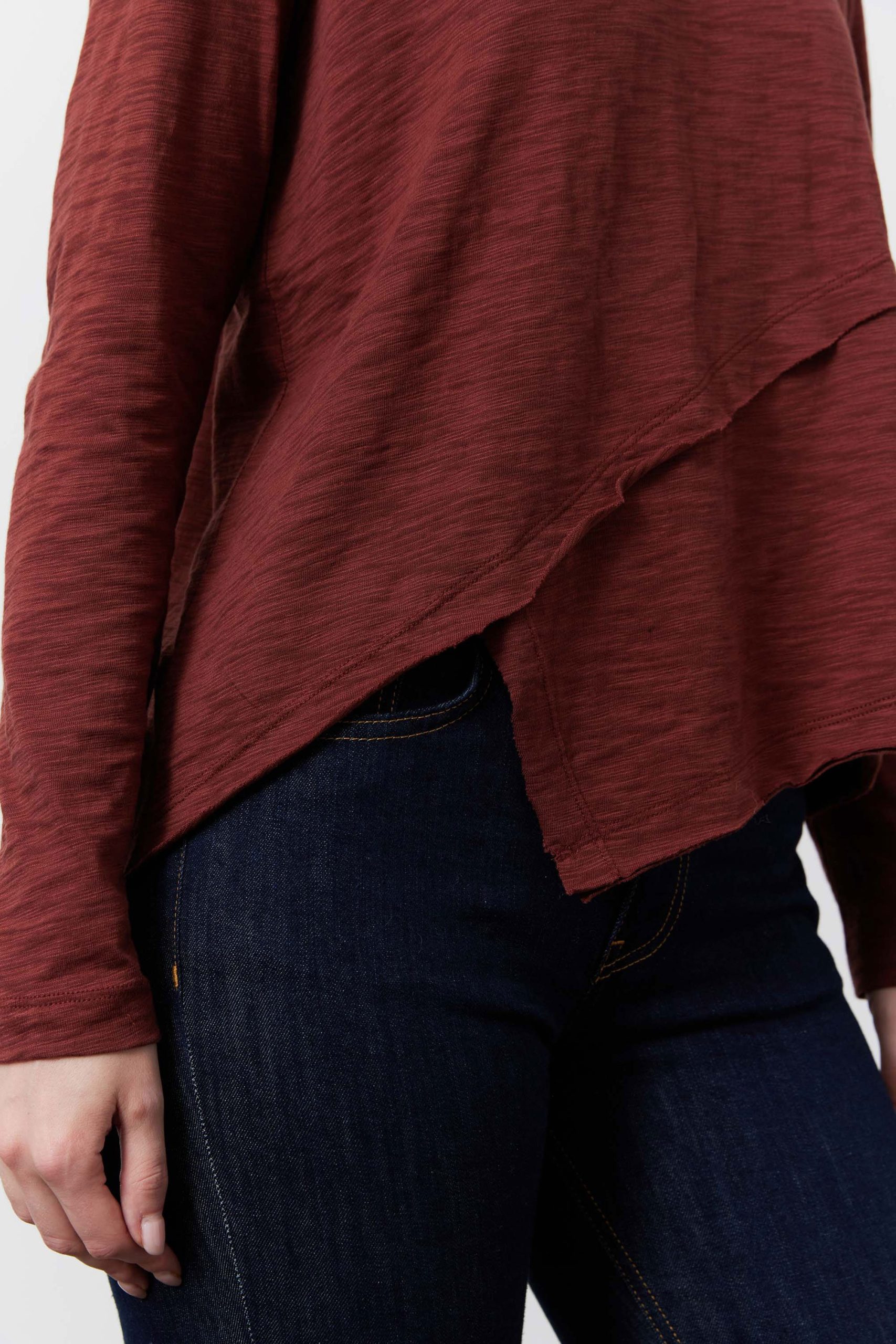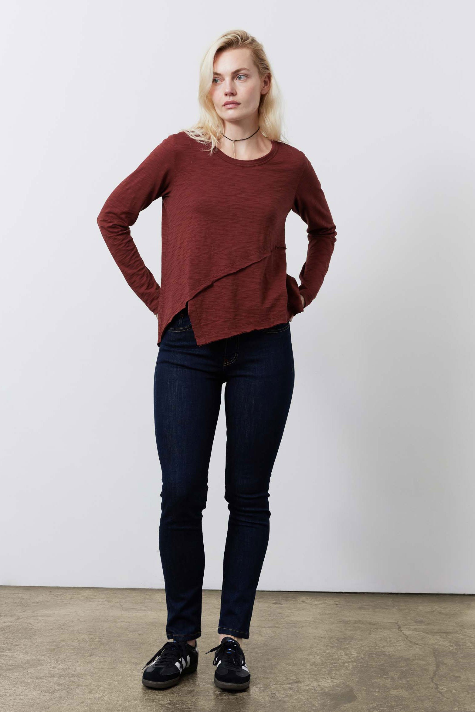 Asymmetric silhouettes are trending for the new season. Make this casual yet stand out piece your new basic with flare. closet staple.