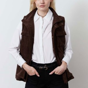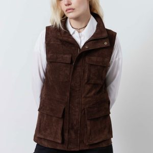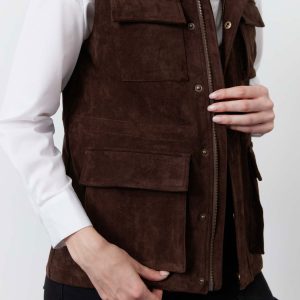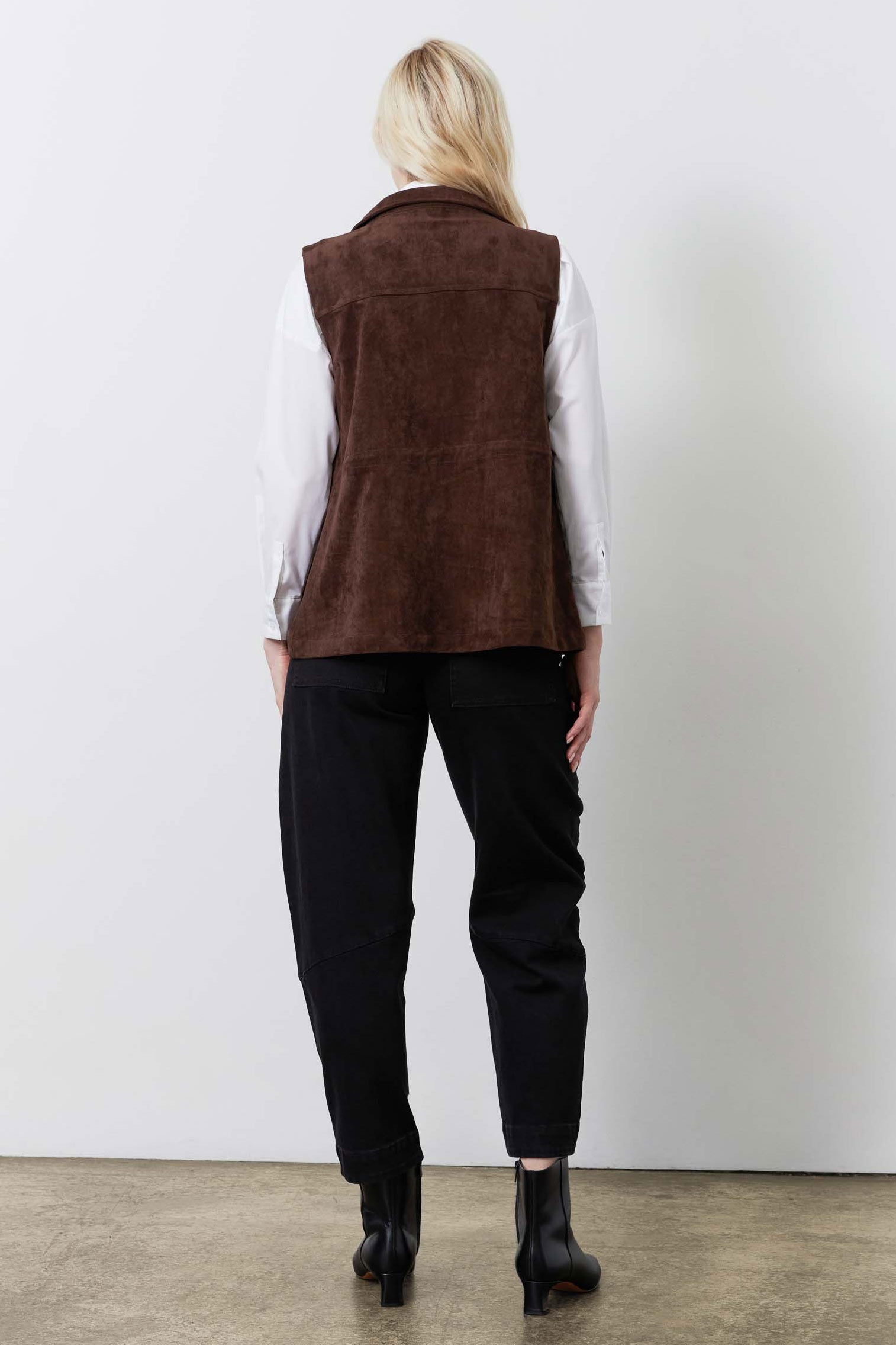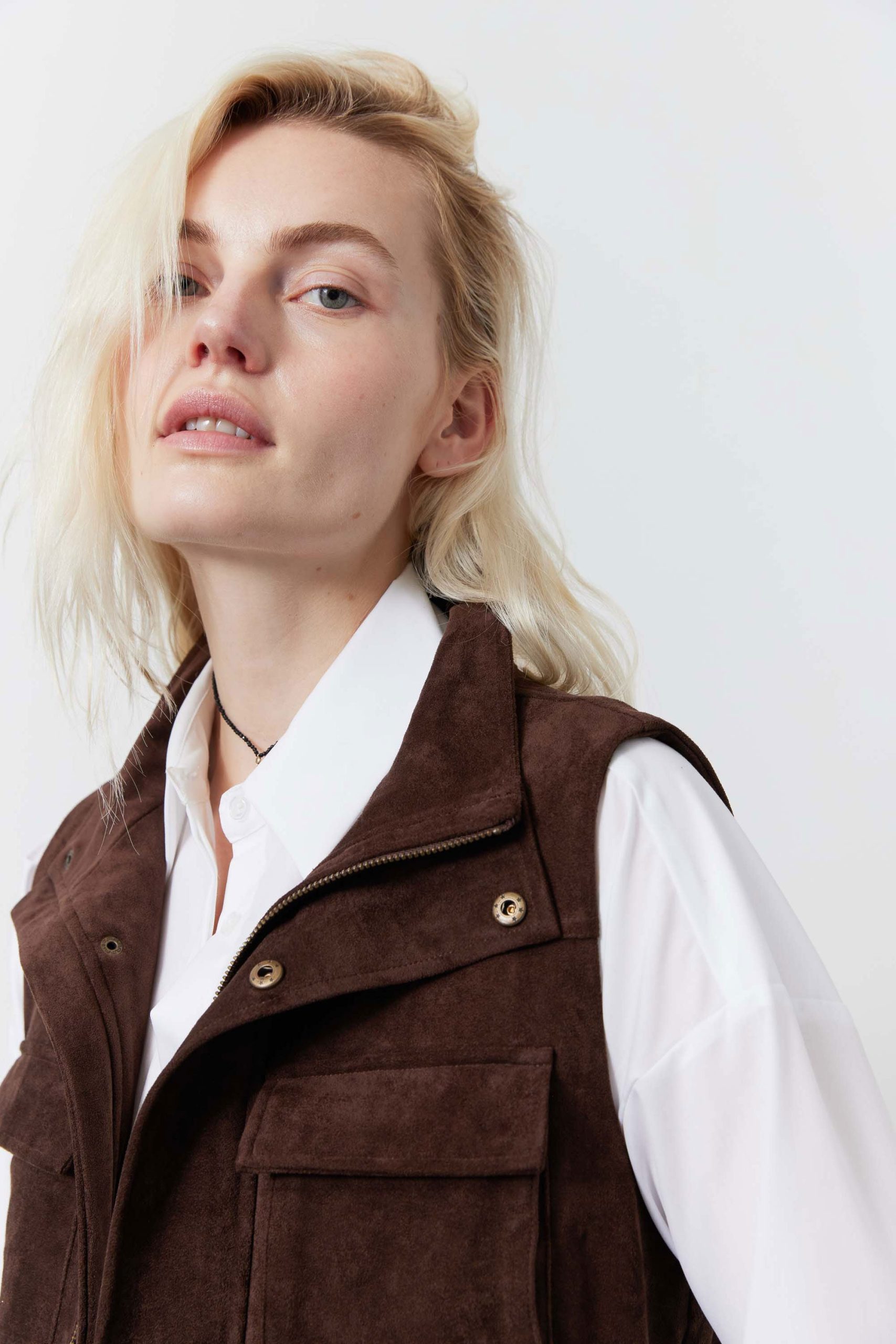 A modern utility layer with a refined feel. This long cargo vest is crafted from soft vegan suede and designed with an easy. relaxed fit — perfect for adding texture and dimension to everyday looks.