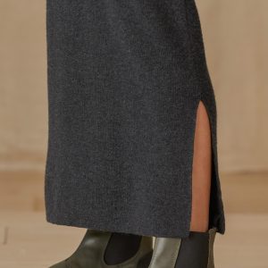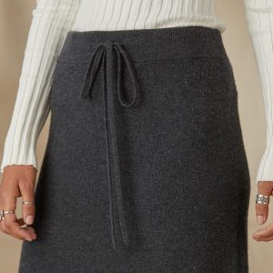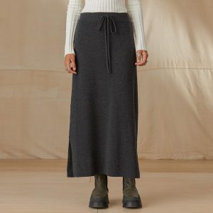 Our versatile. relaxed rib skirt is sure to become a staple of your wardrobe. Straight fit. with elastic/drawstring waistline and side slits for easy movement. Nylon/wool/spandex. Hand wash. Imported. Exclusive. Sizes XS (0-2). S (4-6). M (8-10). L (12-14). XL (16-18). XXL (20-22). Approx. 35.5l. Please size down for a more fitted look.