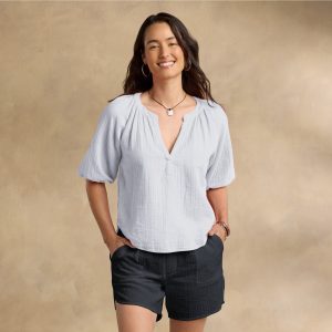Subtle ruffles adorn the collar and hidden-button placket of our sleeveless. classic-fit top. embellished with eyelet details and rounded hem. Cotton. Machine wash. Imported. Sundance exclusive. Sizes XS (4). S (6). M (8–10). L (12). XL (14). XXL (16). Approx. 25.25l.