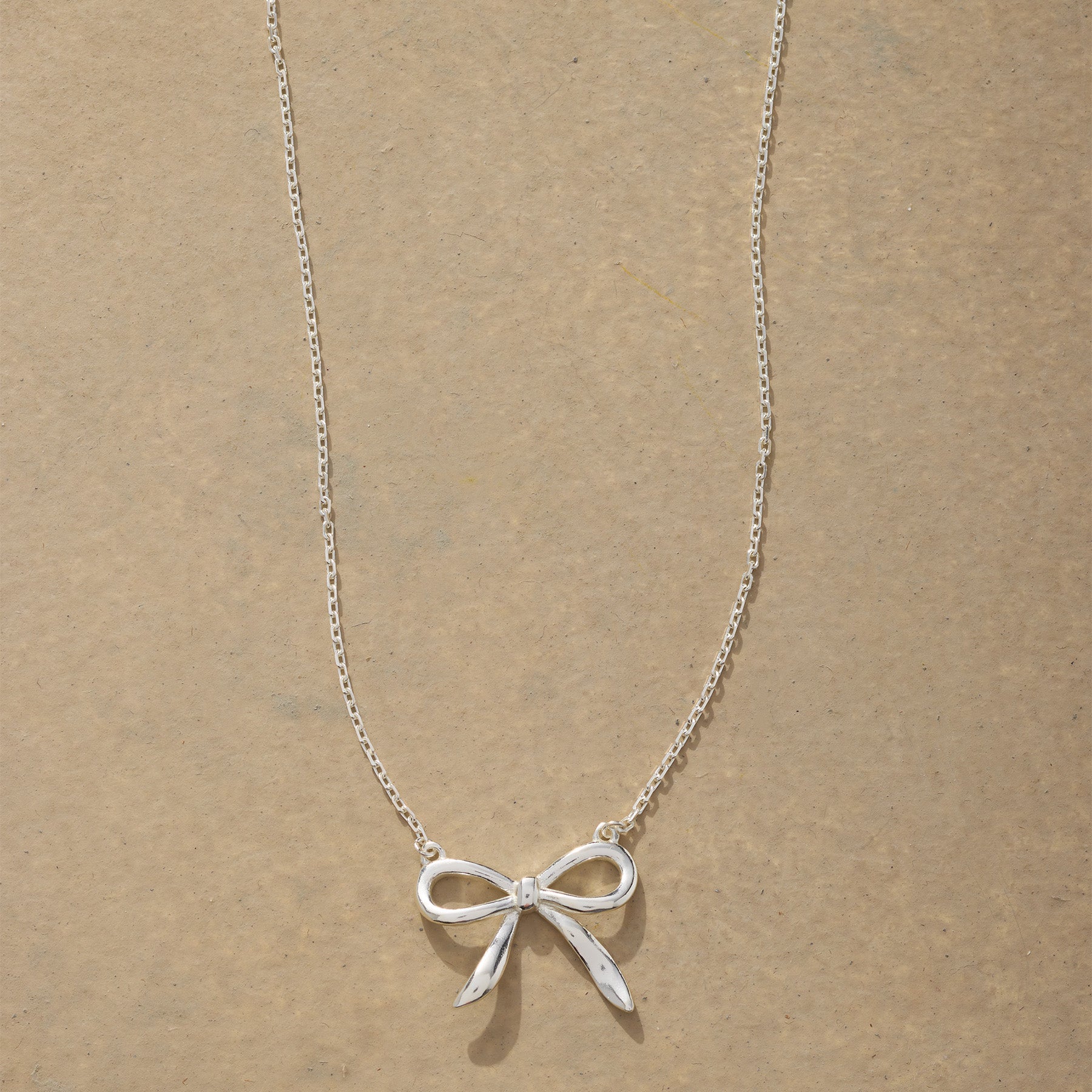 Our exclusive bow necklace is just right on the sweetness scale—not too precious. not too serious. Lobster clasp. Handcrafted of sterling silver. 16 – 18l.