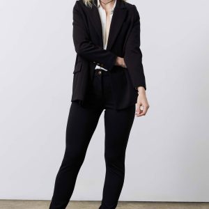 Crafted from a stretch suit fabric. this pant blends comfort with a polished. dressy appeal—perfect for work or elevated occasions. Featuring a tapered silhouette. smart seams. and refined utilitarian details. it offers a sleek. sophisticated fit that ensures elegance and confidence with every wear.