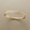 Wavy sterling silver borders symbolize life’s ups and downs. Hammered 14kt gold center. Whole and half sizes 5-10.5. Approx. 1/4w.